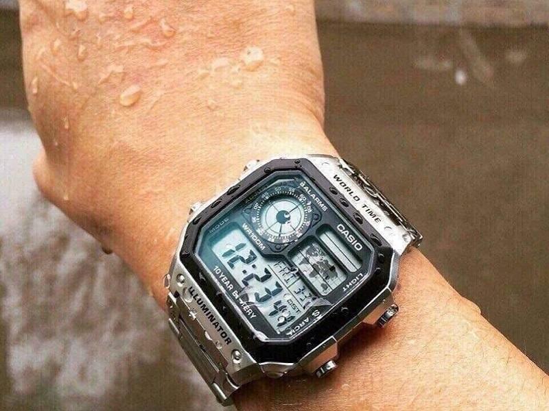 Viền mặt đồng hồ Casio AE-1200WHD-1AVDF kết hợp 2 tông màu đen và bạc tạo nên sự đối lập nhưng cá tính mỗi khi nhìn vào. Với thiết kế dây đeo kim loại không gỉ cùng chất liệu mặt sử dụng nhựa resin, chiếc đồng hồ này mang đến cho người dùng vẻ ngoài trẻ trung nhưng cũng không kém phần mạnh mẽ. Mặt đồng hồ đảm bảo được độ bền và khả năng chịu lực trong khi dây kim loại giúp tăng cường khả năng kháng nước, chống hôi. Bên cạnh đó, Casio AE-1200WHD được trang bị khả năng chống nước vượt trội lên đến 10ATM. Đây là một trong những thông số chống nước khá tốt trong các loại đồng hồ đeo tay hiện nay. Nhờ có tính năng này mà người dùng hoàn toàn thoải mái sử dụng khi đi bơi, chơi thể thao. Riêng các hoạt động hằng ngày như tắm, rửa tay, đi mưa thì hoàn toàn không thể ảnh hưởng đến chất lượng sản phẩm.