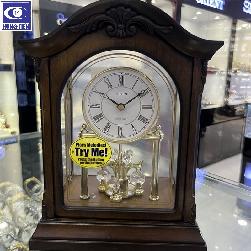 Đồng hồ để bàn RHYTHM CRH124NR06 - Quả lắc xoay đính đá pha lê cao cấp