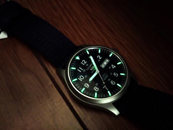 Một điểm nổi bật không thể không nhắc tới là lớp dạ quang được phủ lên kim giờ, kim phút và phần vạch số, giúp người dùng thuận tiện xem giờ khi ở trong bóng tối. Đặc biệt, nếu đi từ ngoài trời nắng vào trong nhà, Seiko SNZG11K1 sẽ khiến cổ tay trở nên sáng rực, rất bắt mắt.