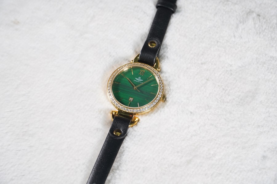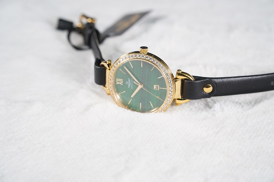 Lựa chọn gam màu xanh - đen làm tiền đề sáng tạo, Srwatch SL5002.4606BL sẽ là lựa chọn hoàn hảo để các nàng phô diễn được vẻ cá tính đặc trưng cùng tư thái kiêu kỳ, sang trọng. Cụ thể hơn, mặt số với nền xanh lục độc đáo mang tới vẻ đẹp khác lạ, tạo dấu ấn riêng biệt, duy nhất. Các cọc số mạ vàng đơn giản nhưng thể hiện được sự tinh tế, sang trọng qua từng chi tiết. Bộ kim chỉ giờ đồng màu với cọc số giúp tổng thể sản phẩm thêm phần hài hoà và cuốn hút. Ngoài ra, đồng hồ còn được trang bị thêm ô chỉ ngày tại vị trí 6 giờ mang lại nhiều tiện ích cho chủ sở hữu.
