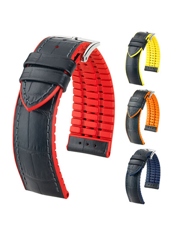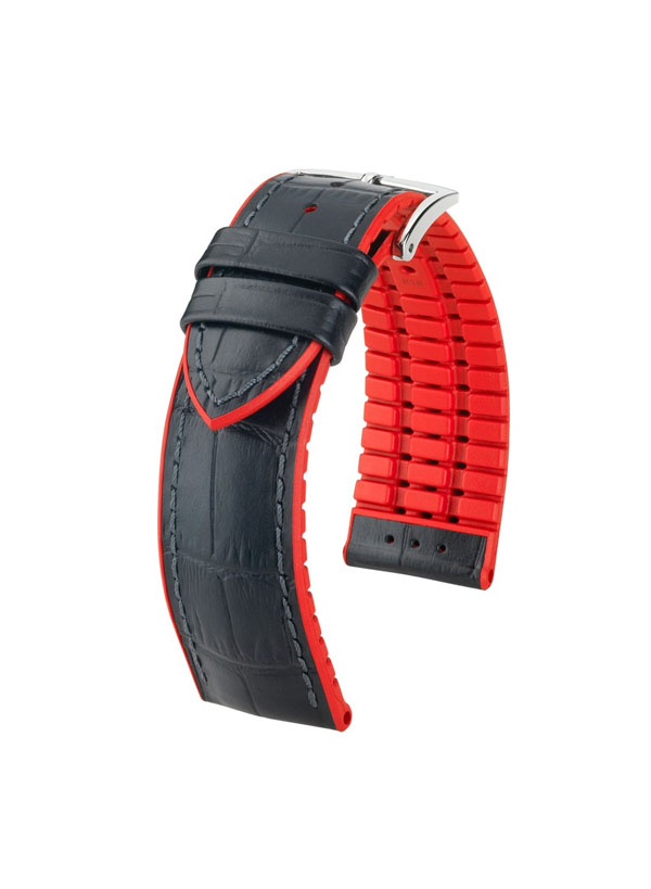 ■ Dây da đồng hồ chống nước 300m HIRSCH Performance Andy được chế tạo từ hai loại vật liệu chính đó là da bê cho mặt trên và cao su thiên nhiên cho mặt dưới. Kèm theo dây là khóa thép không gỉ siêu bền.