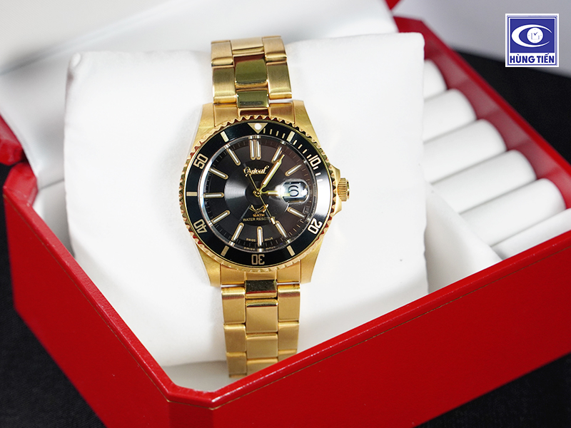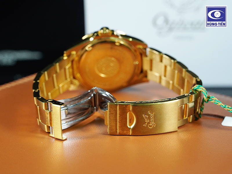 Một trong những chi tiết góp phần mang tới vẻ ngoài sang trọng và mạnh mẽ cho Ogival OG3932MK-D chính là dây đeo kim loại mạ vàng PVD. Sự liên kết của những mắt xích to bản, dày dặn đã biến chiếc đồng hồ trở thành một “siêu phẩm” vừa bền bỉ vừa mạnh mẽ đầy sức hút.
