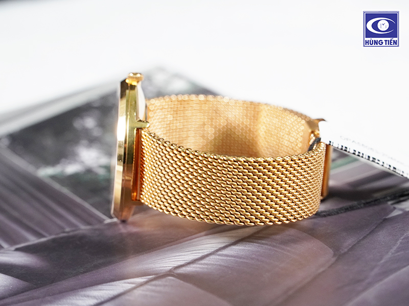Tổng thể đồng hồ Olympia Star OPA58083-204MK-T là sự hòa quyện hài hòa giữa mặt số trắng thanh lịch và dây đeo mạ vàng thời thượng. Dây đeo đồng hồ được làm từ thép không gỉ, từng phần đan vào nhau theo lối thiết kế Milanese cổ điển. Kiểu dây này xuất hiện lần đầu tiên ở Ý vào thế kỷ thứ 13, đến nay là một dạng dây đeo đồng hồ rất được ưa chuộng. Các sợi kim loại được đan với nhau một cách tỉ mỉ nên vô cùng dẻo dai, mang tới cảm giác thông thoáng, nhẹ nhàng và thoải mái cho người sử dụng. Đường kính 40mm cũng là kích thước phù hợp với cổ tay của đấng mày râu châu Á.